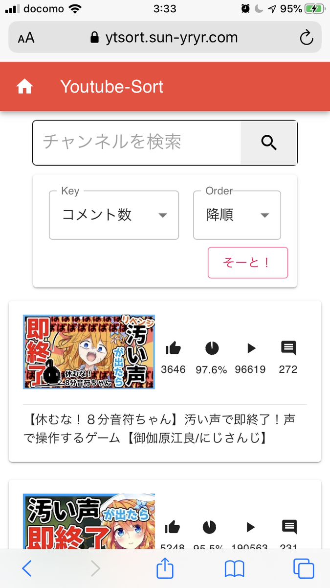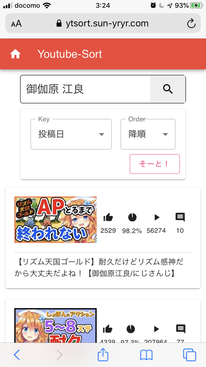 そんなこんなで「高評価割合やコメント数でソートできたら便利じゃん!」って思ったので作りました。ほぼ自分用です。